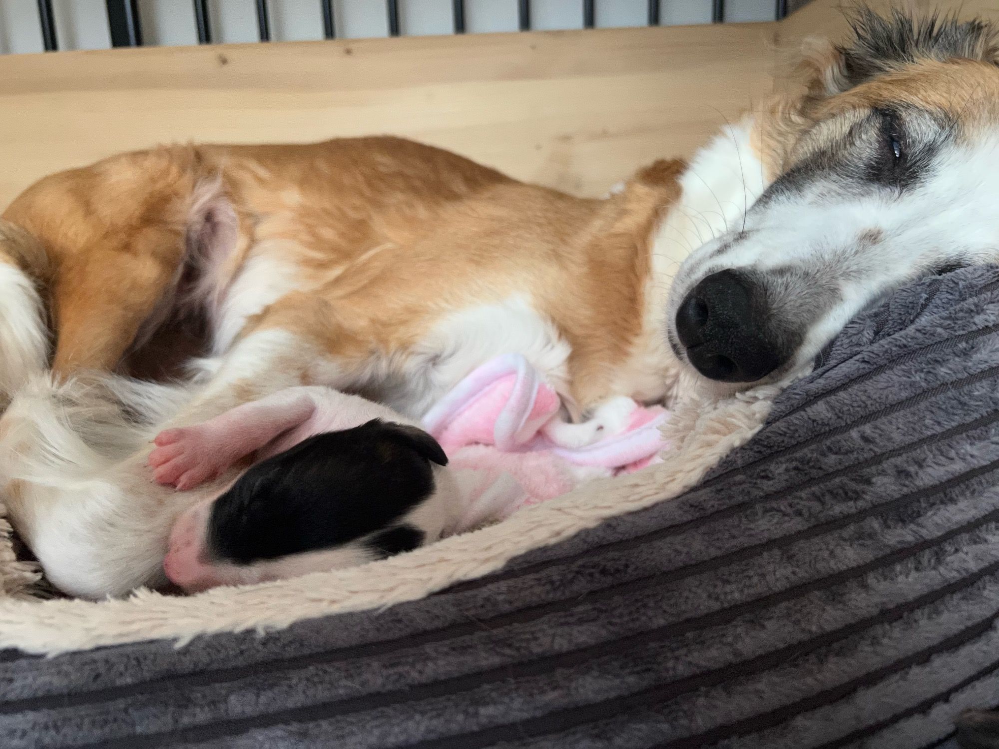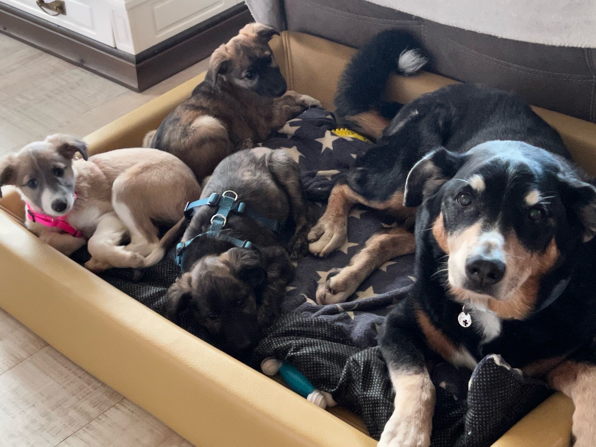 Am 06.02.2023 hat Phoebe innerhalb von 1 Stunde ihre 4 wunderschönen Babys auf die Welt gebracht, es sind 2 Rüden und 2 Hündinnen. Die Geburt verlief absolut komplikationslos und Phoebe hat sofort sehr instinktsicher und liebevoll die Pflege und Versorgung ihres Nachwuchses übernommen.